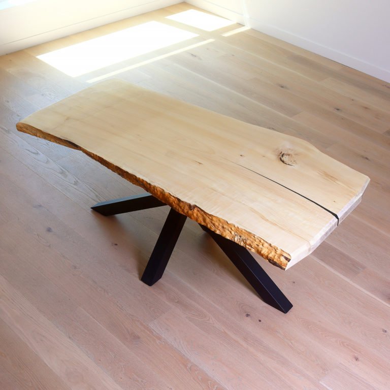 Single Slab Maple Live Edge Table with Gold Resin 8FT