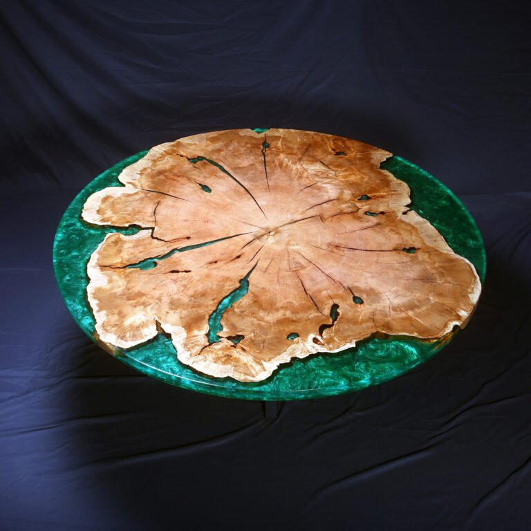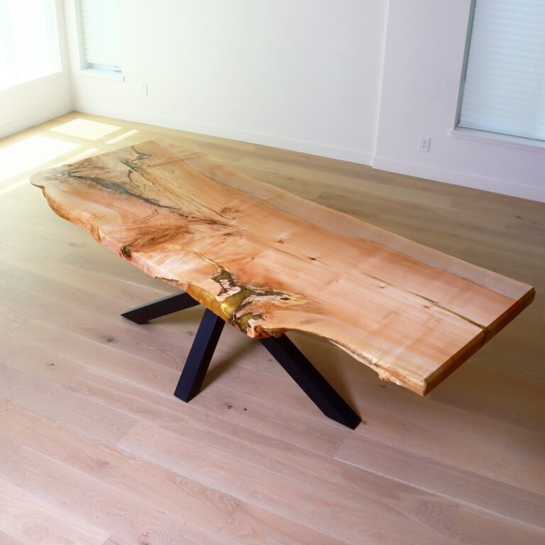 Single Slab Maple Live Edge Table with Emerald Green/Blue Resin 7FT